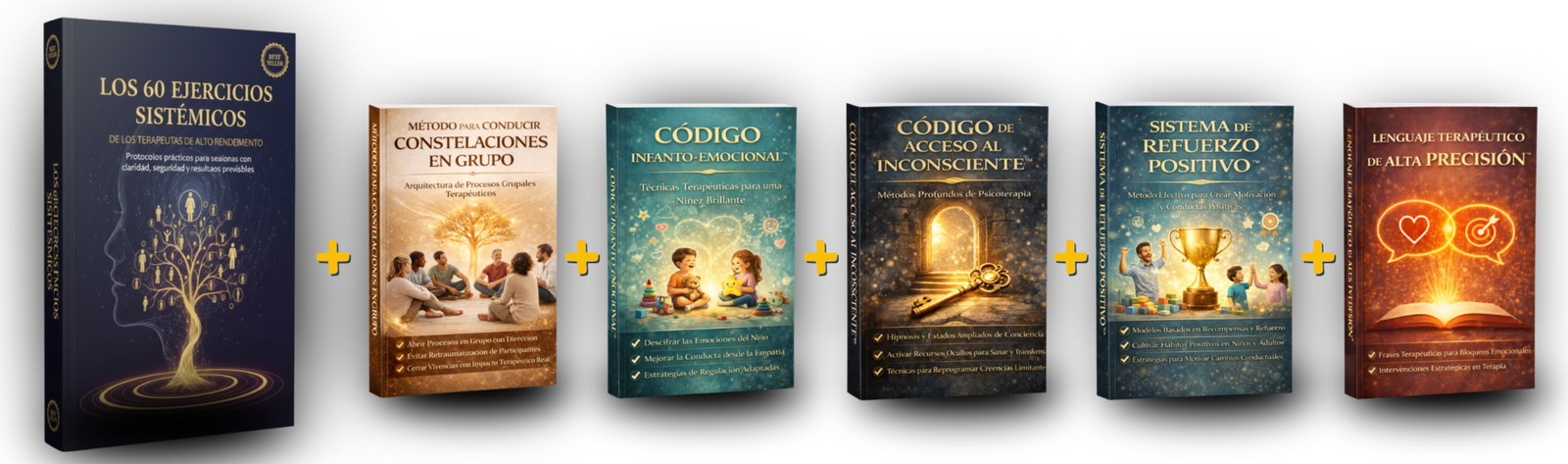 El libro “60 Ejercicios Sistémicos” es un manual clínico completo con acceso inmediato, que te entrega la estructura exacta para aplicar en tus sesiones.